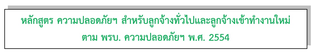 ความปลอดภัยฯ สำหรับลูกจ้างทั่วไปและลูกจ้างเข้าทำงานใหม่ตาม พรบ. ความปลอดภัยฯ พ.ศ. 2554